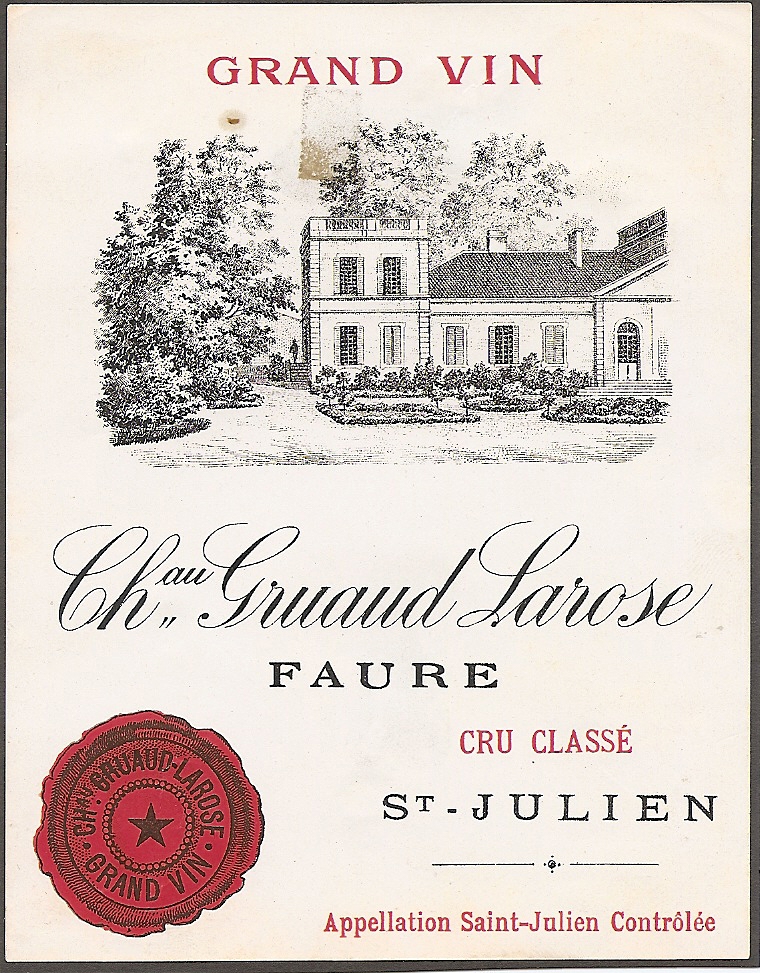 Het excellente wijngoed Château Gruaud Larose te Saint-Julien (Médoc) werd anno 1750 door de heer Gruaud gecreëerd door drie lokale domeinen samen te voegen. In de 19e eeuw echter vond een weer een opsplitsing plaats, nu in twee delen: Gruaud Larose Sarget en Gruaud Larose Faure. Uiteindelijk kocht Désiré Cordier, een regionale wijnhandelaar, in 1917 een eerste deel van het domein, en het resterende negentien jaar later. Zodat er sindsdien opnieuw één Château Gruaud Larose bestaat. Aldus de toelichting van Bert Wentzel, bertwentzel@hetnet.nl, die dit label selecteerde
